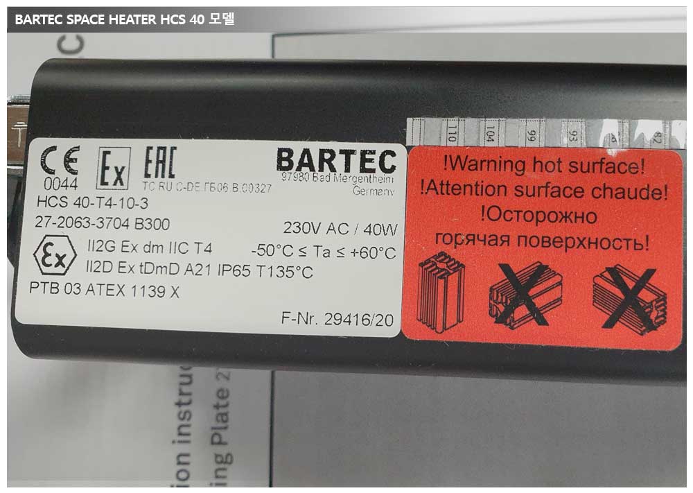 공급품목 : BARTEC사 SPACE HEATER
